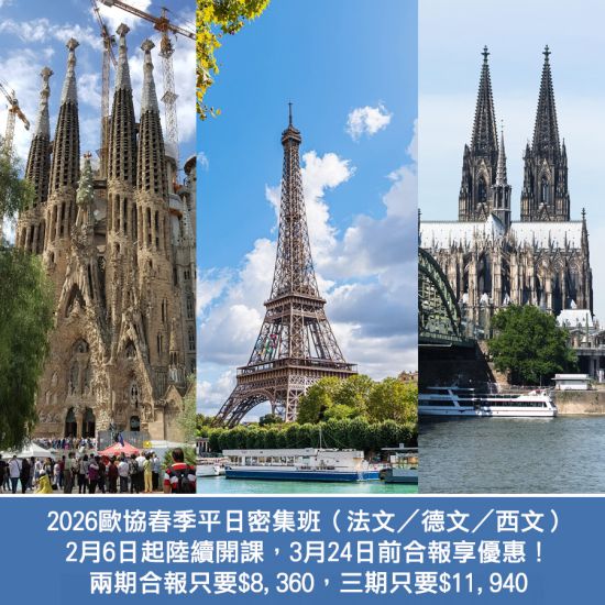 2026歐協春季平日密集班(法文/德文/西文)2月6日起陸續開課!!